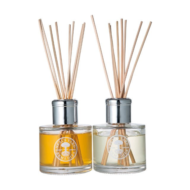 天然精油のみで作られたルームフレグランス。穏やかに過ごしたいときは、優雅なダマスクローズやゼラニウム(左)を。