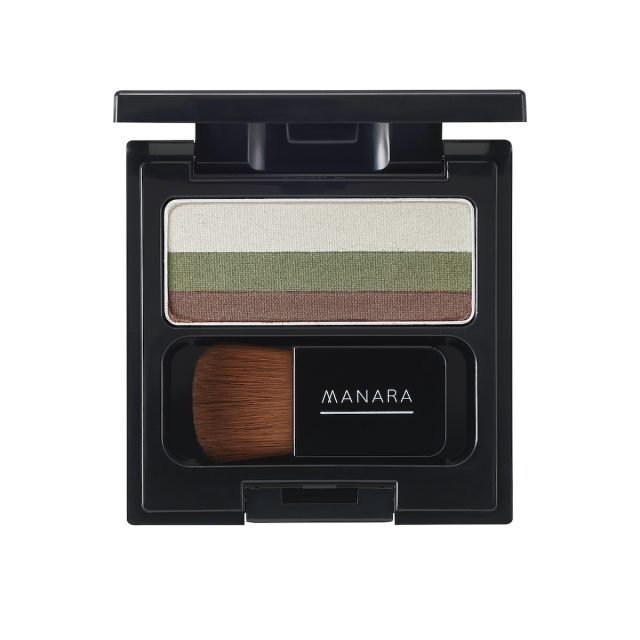 大人の肌をくすませない、なじみのいい黄みをブレンドしたカーキグリーンをメインカラーにしたアイシャドウパレットが登場。繊細なパールを含んだホワイトゴールド、優しく引き締めるウォームブラウンの3色がセットされ、上品かつナチュラルに目元を彩ります。ブラシでパレットを左右に往復させ、目元にそのまま広げることでクイックにグラデアイが完成!
