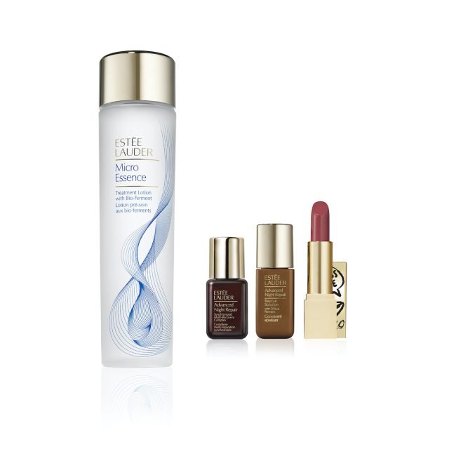 乾燥などのダメージを受けにくい肌に導く化粧水「マイクロ エッセンス ローションBF」もしくは、「同 フレッシュ」から現品1品を選べるコフレ。限定カラーのリップスティックのほか、ベストセラー美容液と今年発売されたブースター美容液のミニサイズもイン。「エスティ ローダー」の人気アイテムを試すチャンスです。