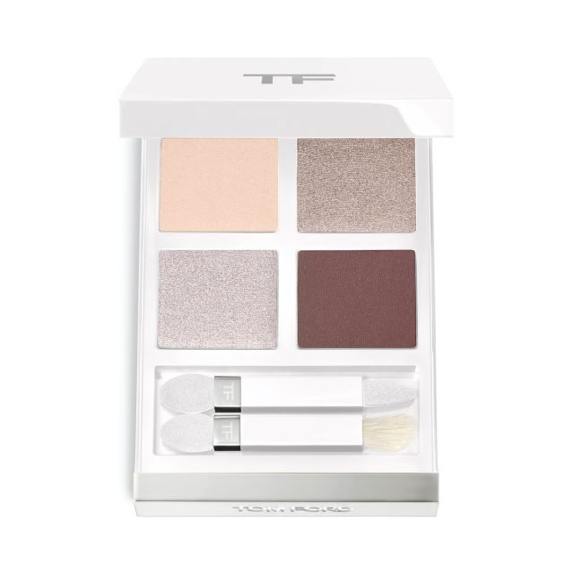 新雪を照らす太陽のきらめきを表現した人気のフレグランス<ソレイユ ネージュ>からインスパイアされたホリデー限定コレクションがお目見え。アイシャドウパレットは、なめらかな感触のパウダーアイシャドウ4色がセットに。洗練されたベージュとブラウンのマットカラーに、透け感のあるトープとシルバーのシマーカラーを重ねてまぶたを彩れば、柔らかく官能的な眼差しがかないます。