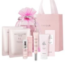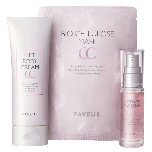 今秋デビューしたばかりのエイジングケアブランド“ファブール”。肌をほぐして、続くスキンケアの浸透を高めるブースター(19ml)、乾燥によるダメージを集中ケアするシートマスク(1枚)、コフレ限定のボディクリ-ム(60g)のセット。オリジナルのピンクの巾着つき。