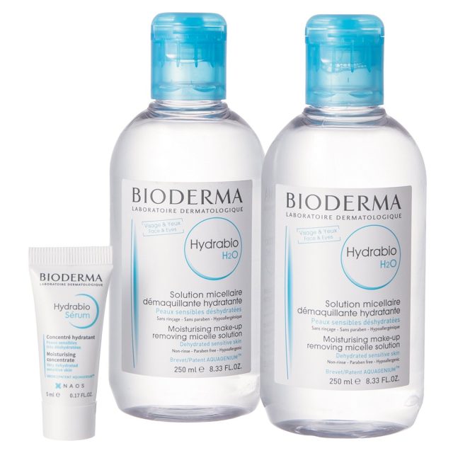 肌本来の潤う力をサポートするスキンケアシリーズ“イドラビオ”の拭き取りタイプのクレンジング水「エイチツーオー」(250ml現品)2本に、ジェル状美容液のサンプル(5ml)がつくキット。メイクやほこりなどの大気中汚染物質を払拭し、しっとりと潤った肌に整える。
