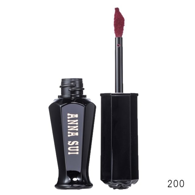 高発色・マット仕上げでつけたての美しさを長時間キープ。200のプラムカラーは上品さはキープしつつ、センシュアルな唇に。