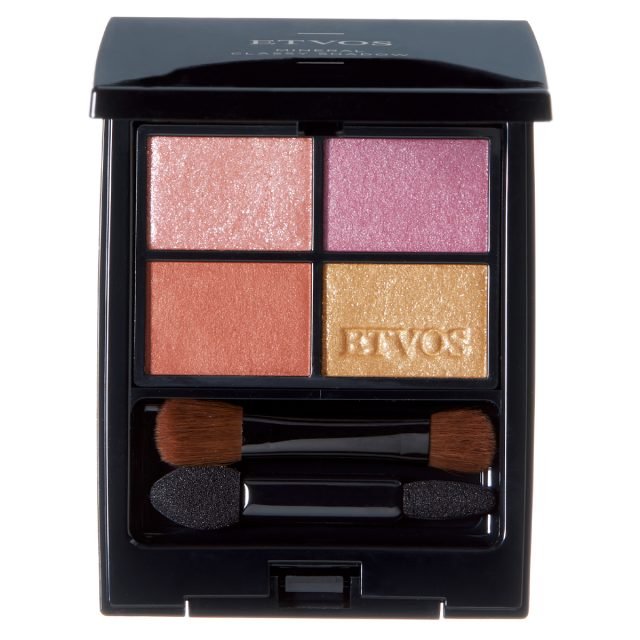 ピンク、オレンジ、イエローの春らしい色彩のパレット。繊細なパールが目元に透明感を生み出し、明るい印象に導く。