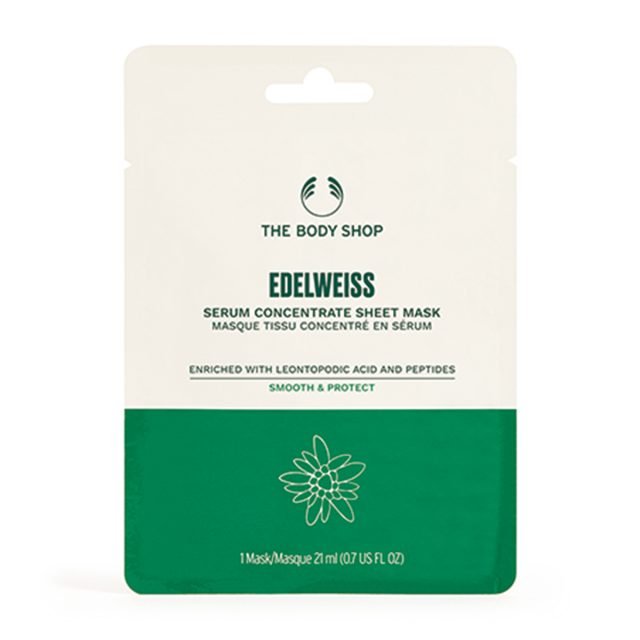 シリーズの人気の美容液「EDW コンセントレートセラム」30mLの約2/3量を含んだ、自然由来成分99%配合のシートマスク。過酷な環境でも生き抜くエーデルワイスエキスを配合。ふっくらと弾むような肌へ。