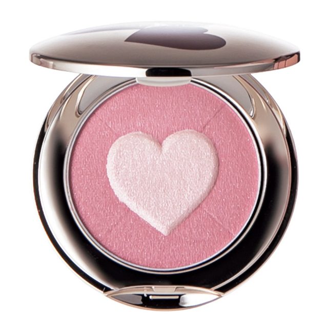 バレンタインシーズンに向けた限定コレクション。大きさや色の異なる偏光パールが、頰に濡れたようなツヤと輝きを与えるチーク。