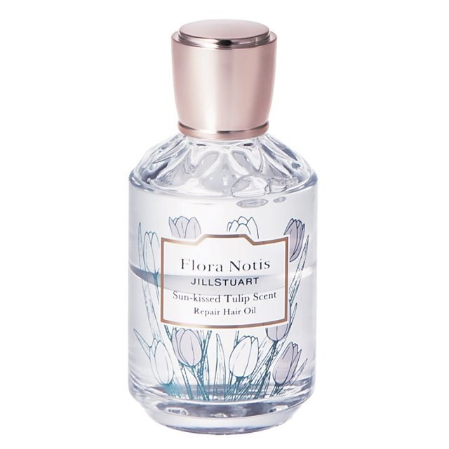 チューリップやフリージアなどの春の花々と、ミュゲが調和するフローラルブーケの香調。髪にツヤと潤いを与える、軽やかな質感の2層ヘアオイル。