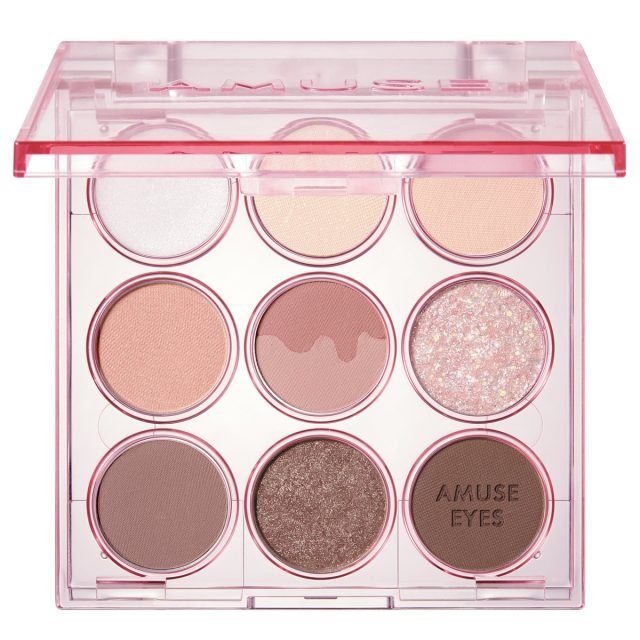 新たにバームや大粒グリッターなどの質感をセット。華やかなピンク&コーラルが目元を自然に強調。