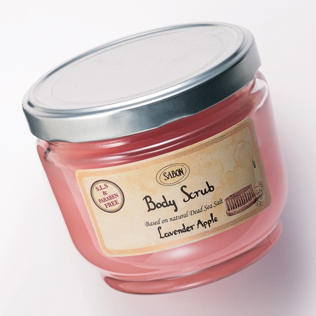 ミネラルが豊富な死海の塩をベースに、アーモンドやホホバ、ボラージといった自然の恵みがたっぷり詰まったオイルで、スクラブと同時に保湿ケアがかなう。9種類ある香りの中で選ばれ続けているのは、ラベンダー・アップルの心を元気にしてくれる香り。