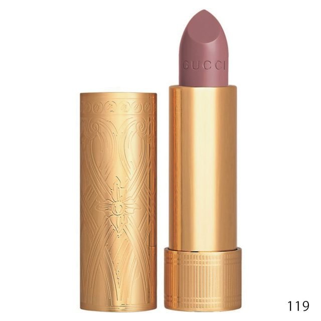 見たままの鮮やかな発色とサテンのような光沢が魅力のリップは、ニュートラルなベージュ中心のカラー展開。ケースはアールデコ調。