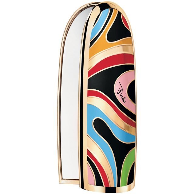 1968年発表のPUCCIのアイコニックなパターン・マルモ柄を、ゴールドのストライプとエナメルカラーで表現したケースは希少!