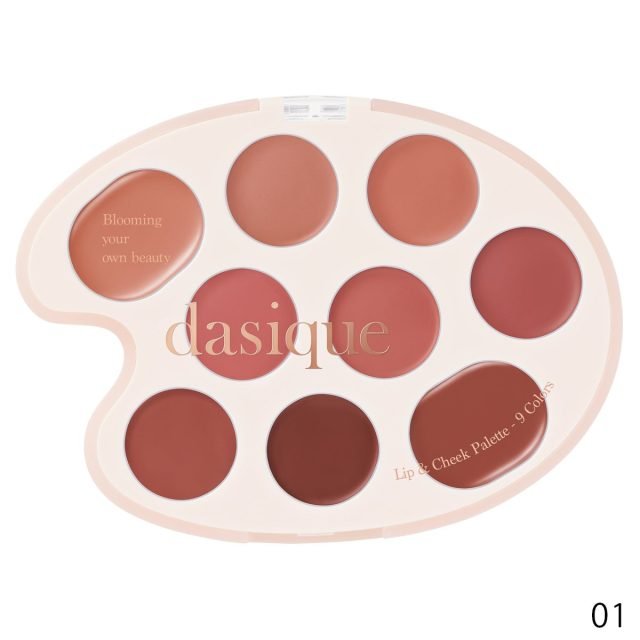 調和がとれつつも多彩な色味で構成されたパレット。ブラーマットやグロッシィな質感を単色で、混ぜて、リップやチークに。