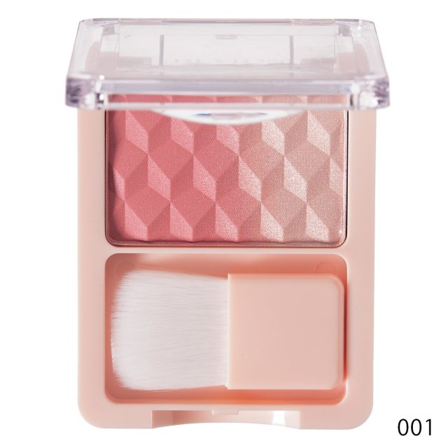 透明感を生むチークと、極薄ピンクのハイライターのセットが、肌に溶け込むようにくすみをとばし、顔に明るさをプラス。