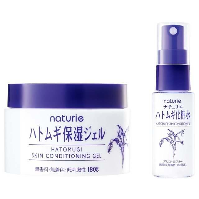肌表面に水の保護膜を形成し、徐々に角質に水分を補給しながら水分の蒸散も防ぐ「ハトムギ保湿ジェル」と同シリーズの化粧水のミストボトルをセットに。
