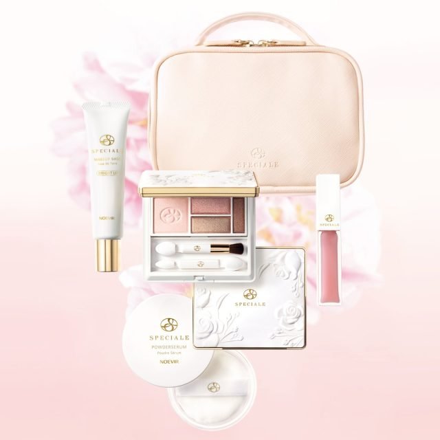 色を重ねてもにごらず、しっとりなめらかにまぶたにフィットして品のある目元を演出するアイシャドウをはじめ、ほのかな光沢を生む繊細なパールを配合したフェースパウダー「スペチアーレ 薬用パウダーセラム」(現品)の限定色など、洗練された大人のツヤメイクをかなえるアイテム4点をセットにした、今だけのスペシャルキットです。