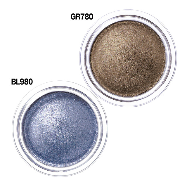 吸いつくようにフィットし、1色でグラデーションをかなえる。GR780はゴールドパールの輝きが美しいカーキ。BE382は女っぽいベージュ。