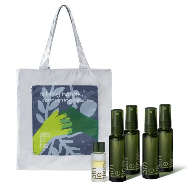 「アスレティア」の大人気アイテム、ルームミスト全4種が試せるスペシャルなホリデー限定ギフト。ヒノキ&グレープフルーツのFEEL THE WIND、ホワイトサイプレス&和ハッカのAT THE TOP、サンダルウッド&ゼラニウムのSACRED TREE、フランキンセンス&ヒノキのGREEN RAYの天然植物精油の香りは気分で使い分けて。しっとりサラサラ肌に整えるマッサージ用ボディオイルのミニサイズ、北海道出身の絵描きであるLee Izumida氏のイラストが描かれたオリジナルバッグもセットに。