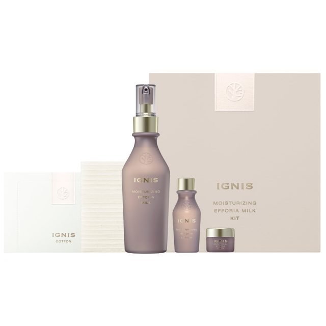 「イグニス(IGNIS)」の最高峰エイジングケアが堪能できる「エフフォーリア」をライン使いできるスキンケアキットが登場。弾みのあるハリを感じる乳液「モイスチュアライジング エフフォーリア ミルク」(現品)と、同シリーズの、濃密な潤いで輝くようなツヤ肌へと導く化粧水、ふっくら肌へ導くクリームのミニサイズ、心地よいお手入れに欠かせないコットンをセットに。古くから伝わる植物エキスを贅沢に配合することで、肌を積極的にサポートします。12種類のハーブを絶妙にブレンドした清々しさと優しさを感じる心地よいハーバルフレッシュの香りつき。