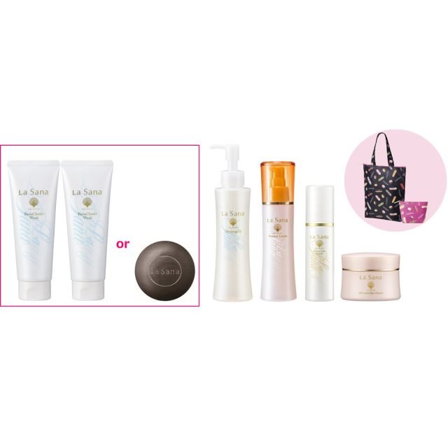 洗顔料を選べるスキンケアコフレが登場。毛穴汚れもザラつきもスッキリ洗い上げるスクラブ洗顔料or100%植物成分のモコモコ泡がモチモチ肌に洗い上げる洗顔ソープのどちらか好きな方をチョイス。そこに、濡れた手でも使え、しっかりメイクオフするクレンジングオイル、ぐんぐん浸透して後から使う化粧品を肌の奥まで引き込む導入美容液、日焼けによるシミ、ソバカスを防いで、潤いあふれるハリ肌に導く美白美容液がセットに。美食ブランド「フォション」とコラボしたレアでキュートなトートバッグ&ポーチも必見!