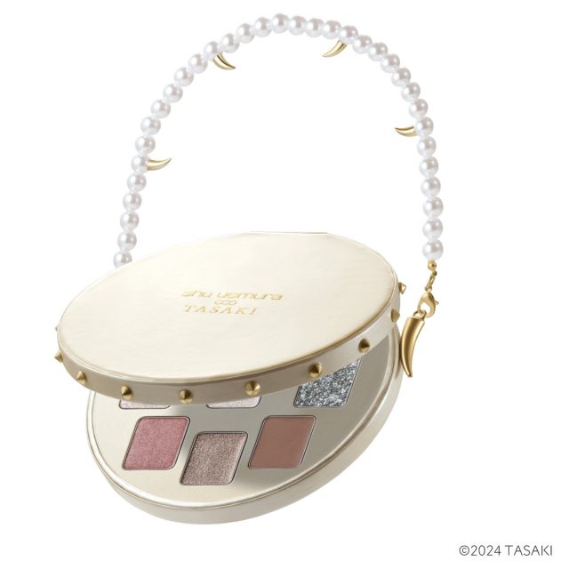 TASAKIのアイコンシリーズ<デインジャー>からインスパイアされた、パールのハンドルつきアイシャドウパレットが登場。あこや真珠のような輝きを放つパールカラーや、サクラ ゴールドカラーなどを全9色をセット。気分に合わせて、エレガントにもエッジーにも彩れるアイシャドウでホリデーメイクを楽しんで