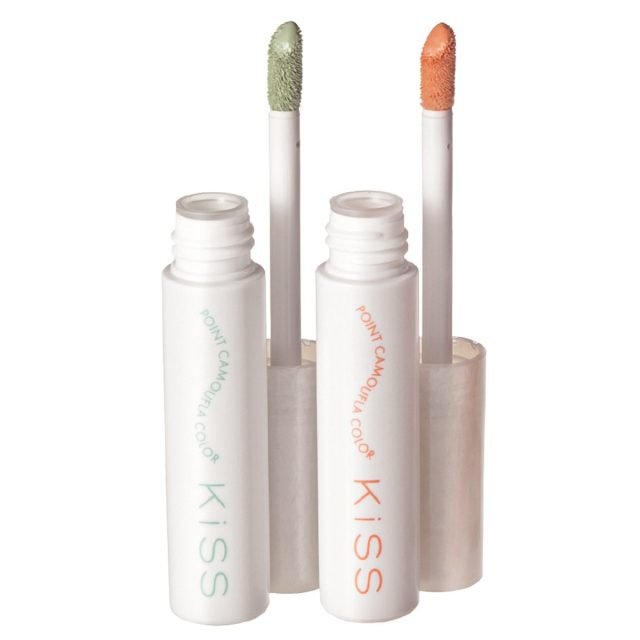 薄膜でピッタリと肌にフィットする部分用コントロールカラー。くまや眉の剃り跡をカバーするオレンジと、赤みやニキビ痕をカバーするグリーン。