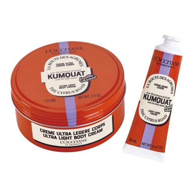 南仏の太陽のエネルギーをいっぱい浴びたカムクアットに、しっとり肌に導くフレッシュな香りのシアを加えた<カムクアット シア>のボディクリームと、同じ香りのハンドクリームの現品をセットに。乾燥しがちな冬の手肌をたっぷりの潤いで満たします。