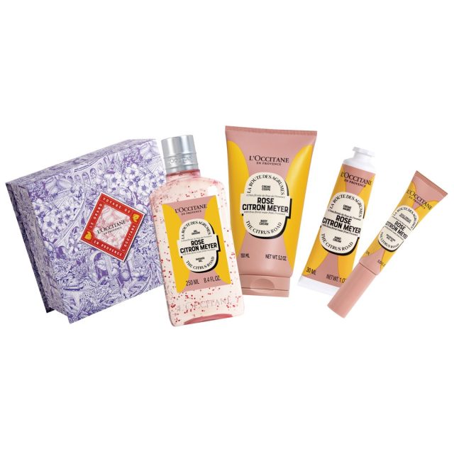 2024年のホリデー限定コレクション<ローズシトロンメイヤー>のアイテムが詰まった贅沢なコフレが登場。ふわもこ泡で優しく洗い上げるシャワージェルをはじめ、肌に潤いを与えるボディクリーム、乾燥しがちな手肌を守るハンドクリーム、爪先に輝きを与えるネイルオイルの現品をセットに。ローズの華やかさと爽やかなレモンのみずみずしさが調和したシトラス調の香りを全身で堪能できます。