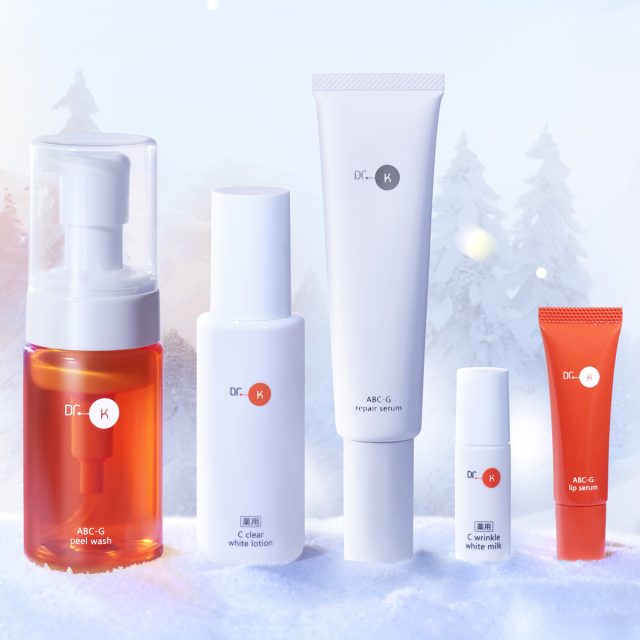 毛穴に詰まった角栓や不要な角質をケアする泡洗顔「ABC-G ピールウォッシュ」のハーフサイズ、肌のビタミンサプリのように高浸透して透明美肌をかなえる化粧水「薬用 C クリアホワイトローション」のミストタイプ、むきたまごのような肌に導くレチノール美容液「ABC-G リペアセラム」の大容量タイプ、シワ改善・美白をかなえる薬用ビタミン乳液「薬用 C リンクルホワイトミルク」のミニサイズ、2024年5月にリニューアル発売した唇の荒れを防いで潤いを与えるリップ美容液「ABC-G リップセラム」、オリジナルの巾着をセットに。人気のスキンケアでくすみのない肌を実現します。