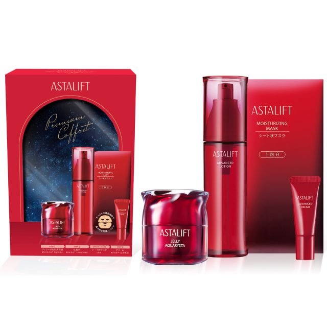 「アスタリスト」を思う存分体感できるホリデー限定コフレ。洗顔後すぐの肌に使用することで潤いを湛えた土台に導き、次に使う化粧水のなじみを高める先行美容液と、角層まで潤いで満たして艶やかなハリ肌に導く化粧水、たっぷりの美容成分で集中ケアするシート状マスクはすべて現品。さらに、濃密な潤いでふっくら弾むようなツヤ肌に導くクリームのミニサイズもセットされ、トータルケアでのお手入れに満足度も高まること間違いなしです。10月16日公式オンラインストアなどで予約スタート。