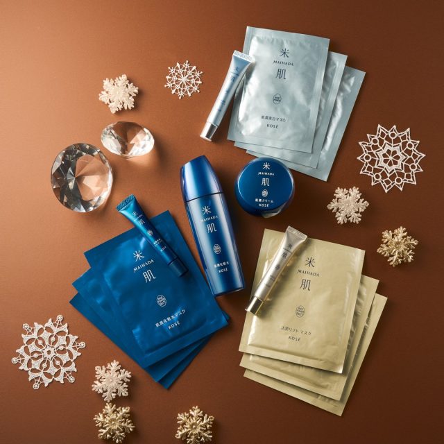 米と発酵の力で、潤いを湛えたもっちり肌に導く保湿化粧水と保湿クリームの現品がお得に試せるホリデー限定コフレ。ともに肌の水分保持能を高める有効成分<ライスパワーNo.11>を配合した、人気NO.1、NO.2 のアイテムです。そこに、保湿、美白、エイジングケアをかなえる3種類の美容液のミニサイズとシートマスクがセットに。使い比べをして、自分に合った美容液&シートマスクを探してみるのも◎。