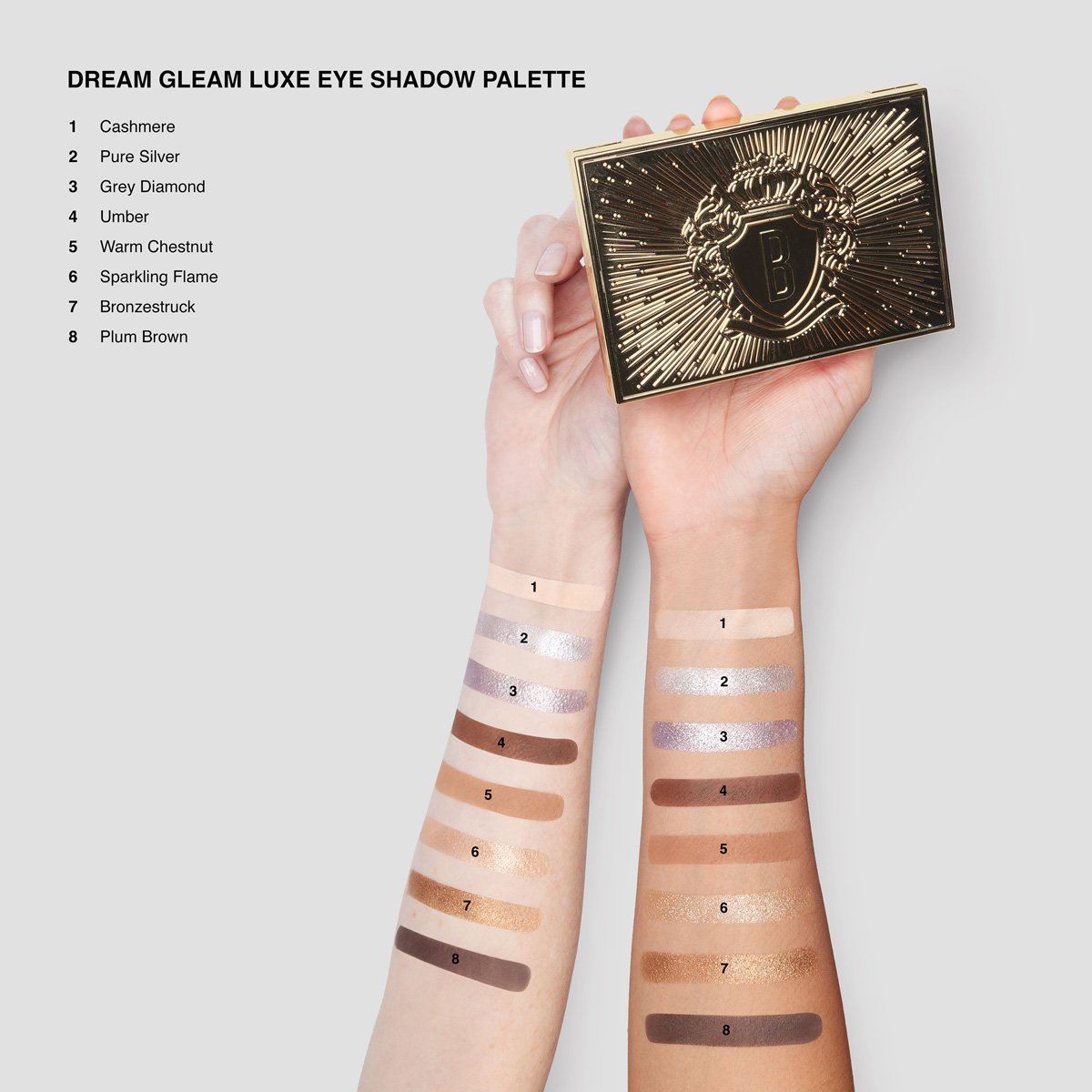 ホリデーシーズンのきらびやかなニューヨークをイメージした、このパレット限定のメタリックとマット質感のアイシャドウを4色ずつセットイン!ベージュやブラウン、ブロンズを使った温かみのある印象から、メタリックシルバーがクールにきらめく華やかな印象まで、さまざまなシーンに合わせて眼差しをカスタマイズできます。ラグジュアリーなゴールドパッケージもホリデー感たっぷり。