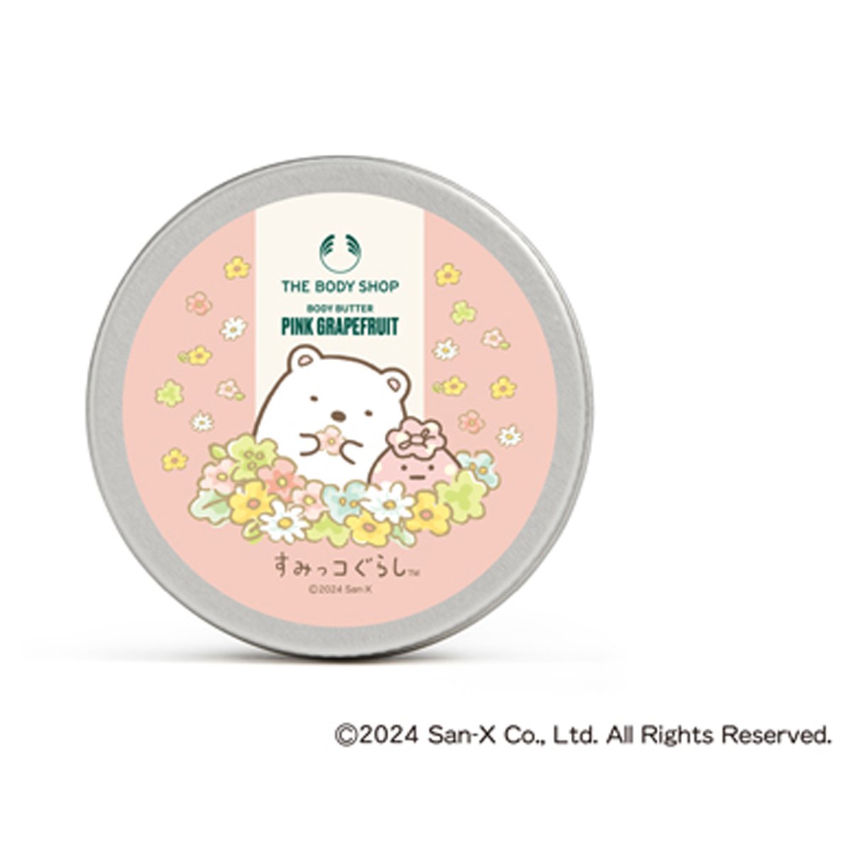 こっくりとしたバターのように溶けるテクスチャーで肌に潤いを与えるボディバターが、人気キャラクター「すみっコぐらし」の限定パッケージで登場。ほのかに甘く優しいナッツが香る<シア>、フレッシュでジューシーな<ピンクグレープフルーツ>、エレガントで優美な香りの<ブリティッシュローズ>の3種。持ち運びに便利なコンパクトサイズです。