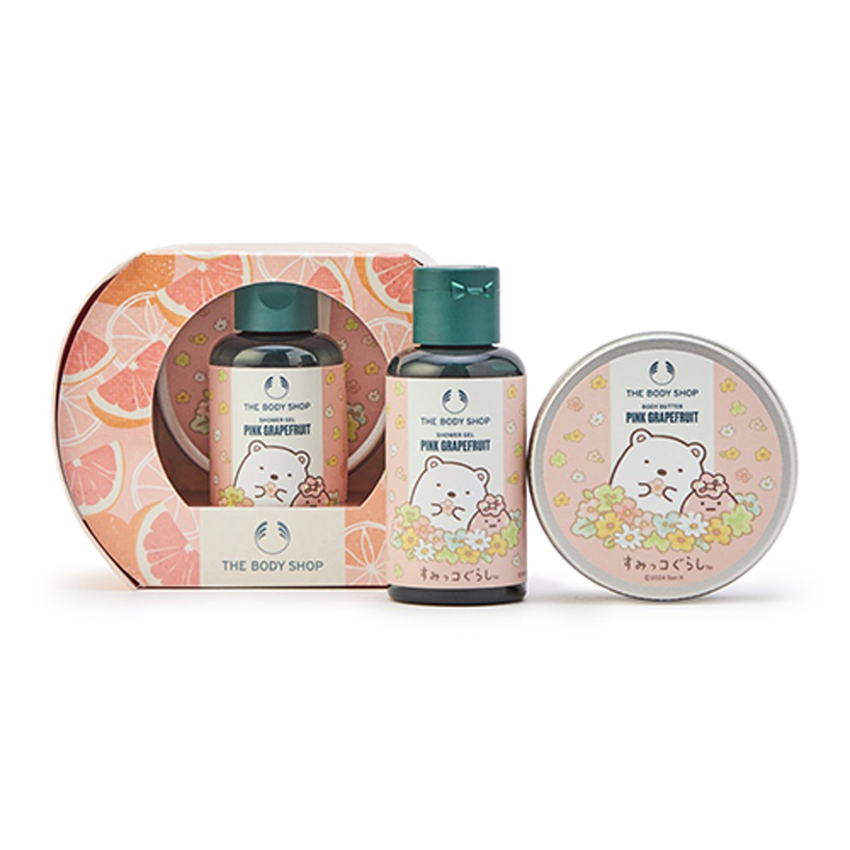 人気キャラクター「すみっコぐらし」の限定パッケージで登場のボディバターと、シャワークリームまたはシャワージェルをセットに。ほのかに甘く優しいナッツが香る<シア>、フレッシュでジューシーな<ピンクグレープフルーツ>、エレガントで優美な香りの<ブリティッシュローズ>、グリーン系に野いちごの甘さを加えた<ストロベリー>の5種。ミニサイズのコフレは旅行へ持っていくのにも便利です。