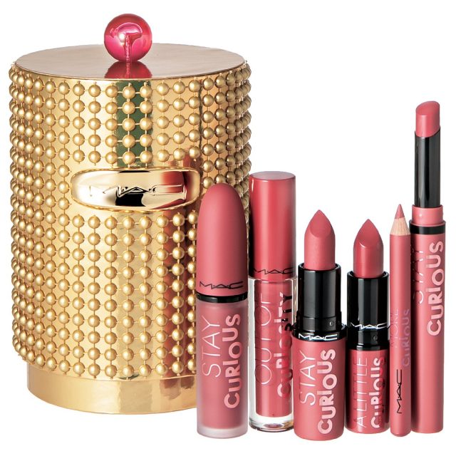 キラキラのゴールドのBOXに入っているのは、M・A・Cの大人気リップ6アイテム! すべてのカラーが、ブランドのアイコニックシェード“ステイ キュリアス”から着想を得たピンキーレッド。スティック、ペンシル、グロスなど異なるアイテムと、柔らかなマットやシアーなツヤなど多種の質感との併せ使いを楽しんで。