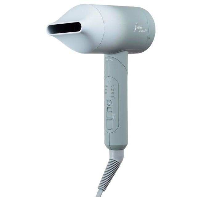 SALONMOON初となるドライヤーが誕生。風量(SET・DRY・TURBO)×風温(COLD・45℃・60℃・90℃)の組み合わせにより、髪質や目的に応じたカスタマイズが可能。さらに全モードに高濃度のマイナスイオン機能が搭載されていて、静電気を抑えながら、まとまりの良い髪へと導いてくれる。ムーングレー、モーヴピンク、ブラック(¥7,680)の全3色展開。