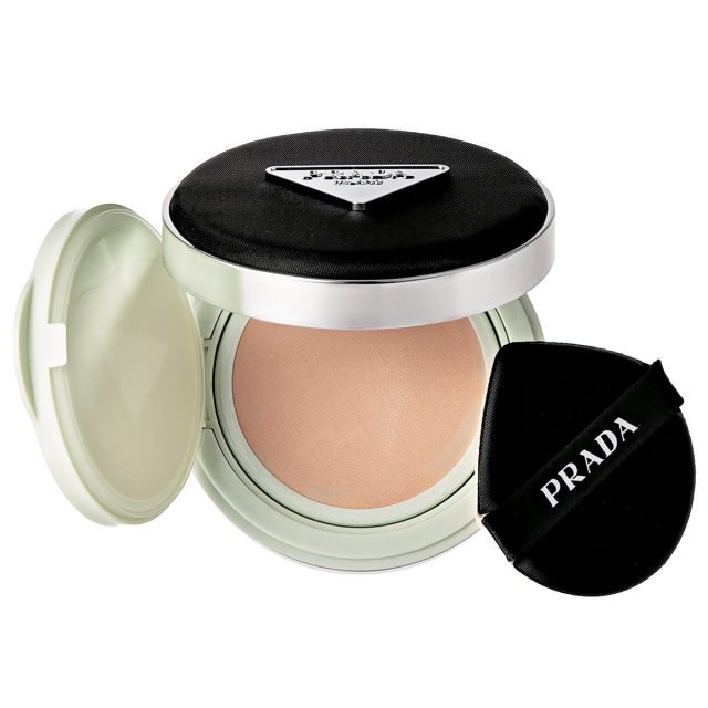 薄膜の超柔軟なテクスチャーが表情の動きにぴったりとフィットし、一日中くずれ知らずのクッションファンデーション。ナイアシンアミドなどのスキンケア成分がふんだんに配合され、イキイキとしたツヤ肌に。プラダのファッションの代表的な素材「Re-Nylon」が使用されたコンパクトも素敵!