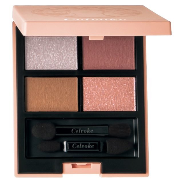 公式サイトはこちら世界的芸術家のミュシャの絵画が施されたパッケージ。深みのあるレッド、グリッターピンク、グレージュ、キャメルブラウンの4色がセットされたアイシャドウパレット。