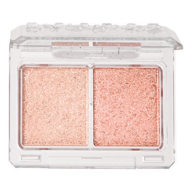 同系色の2色セットのアイシャドウ。オイルリッチな処方で作られているので、アイシャドウ下地を使わなくてもピタッとまぶたに密着。多色の大粒パール&小粒パールが濡れたような輝きを放つ。黄みピンク系の“アプリコットピューレ(01)”と青みピンク系の“ピンクプードル(02)”の2色展開。