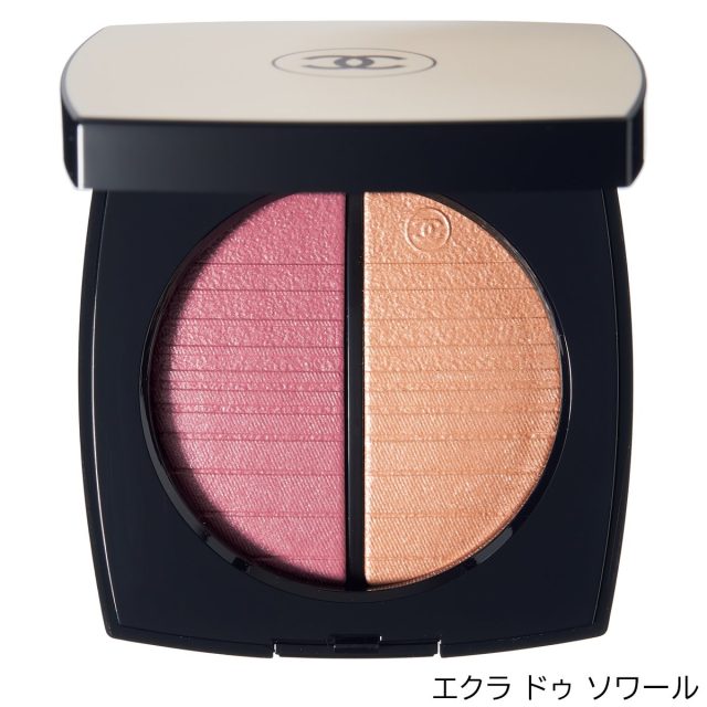 夕暮れから日没にかけての空を描いたような、ミュートなチークカラーと、繊細に輝くゴールドハイライトのセット。半月形ブラシつき。