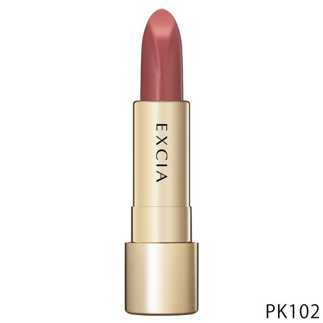 上質な光沢がリップラインを引き立て、唇の立体感を強調。PK102はエレガントなローズ、BE401は優しげな印象を与えるベージュ。