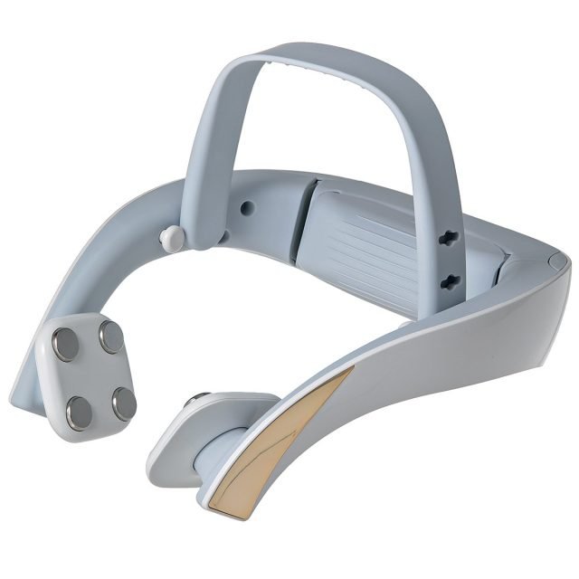 ハンズフリーのヘッドセット型美顔器。2対の電極から異なる周波数の電流を2種流すことで、大きなエネルギーの出力を可能にした独自技術“干渉波EMS”を搭載。