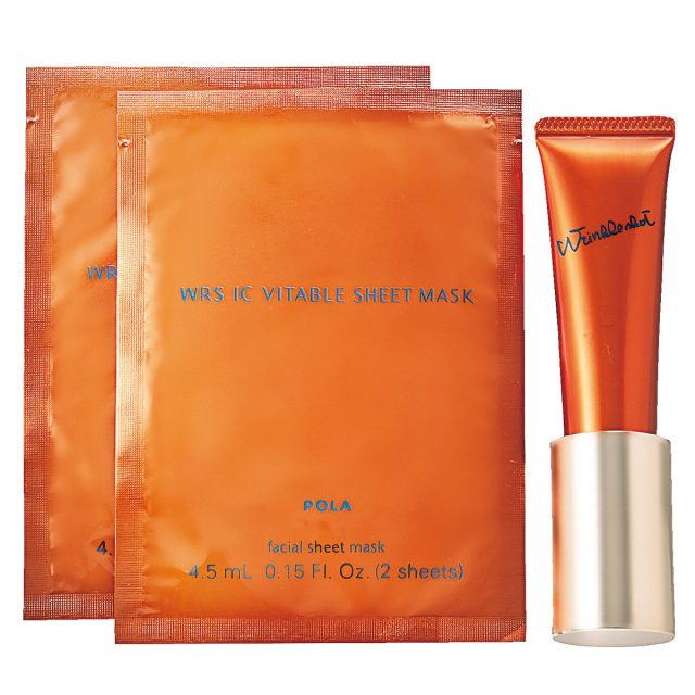シワ改善美容液「リンクルショット メディカル セラム[医薬部外品]」のハーフサイズ(10g)と、部分用シートマスク「WRS ICバイタブルシートマスク」(2枚入×2包)のセット。美容液は、有効成分“ニールワン®”がシワの一因“好中球エラスターゼ”の働きを抑制。