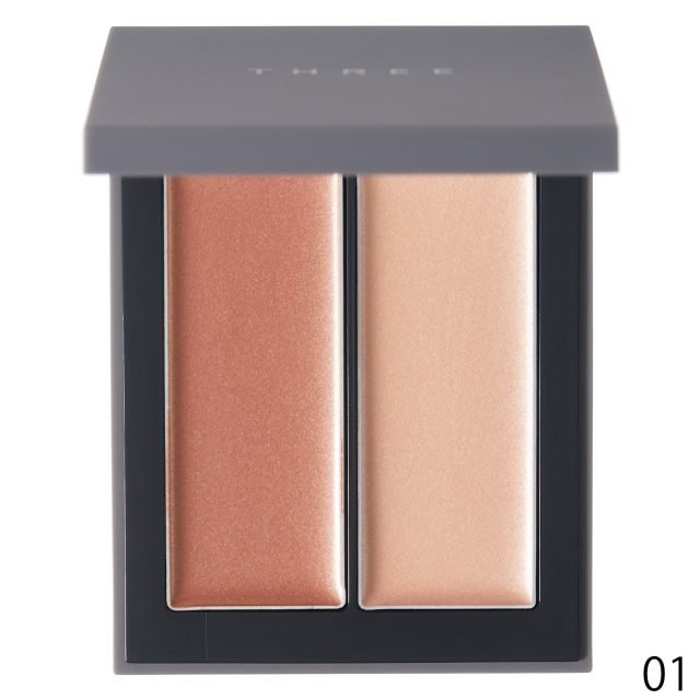 血色を補い光を集め、骨格を引き立てる2色パレットが刷新。肌の色を選ばない01は自然な血色をプラス、02は肌をより明るく輝かせるカラー。