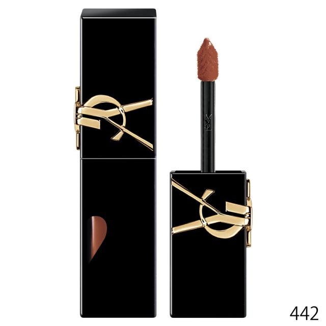 約90%がスキンケアベースながらリッチな発色とツヤをかなえ、ふっくら存在感のある唇に装う。442は肌色を選ばないブラウン。7月23日一部店舗、公式ECサイトにて先行発売