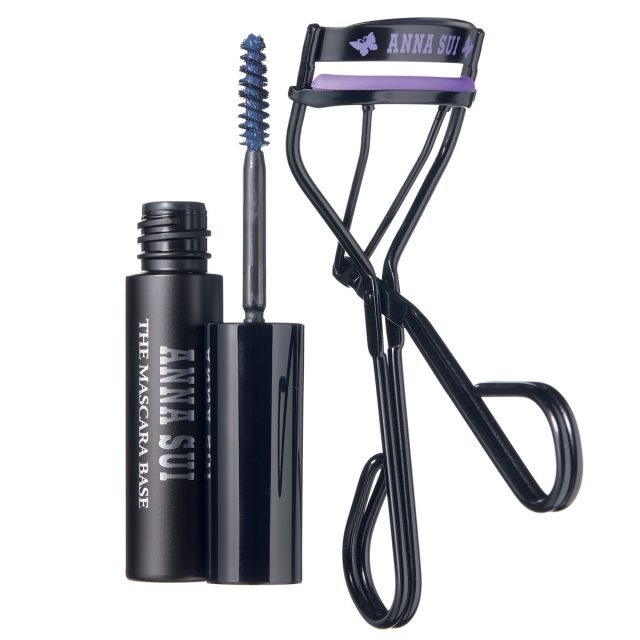 アイラッシュカーラーと、マスカラの発色を引き立てるネイビーのベースをセットに。視線を奪う美まつげの下準備が完成。