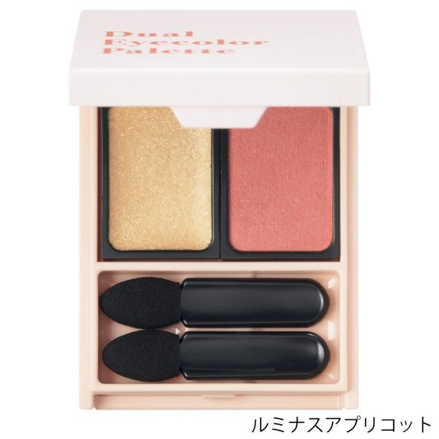 濡れツヤを演出する高密着パールベース(左)の上に、自然な陰影を作るシアーマットカラー(右)を重ねてぼかせばメリハリアイが完成。