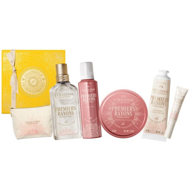 2025年のホリデー限定コレクション<プルミエール レイヨン>のアイテムが詰まったボリューム満点のボディケアコフレが登場。ピオニーやカメリアがみずみずしく香るオードトワレをはじめ、同じ香りのシャワーホイップ、全身を潤いで包み込むボディクリーム、手肌をしっとり整えてくれるハンドクリーム、つめの先までなめらかに整えるネイルオイルをセットに。朝日が昇る際のピンク色の光を連想したデザインのポーチつき。※予約限定発売