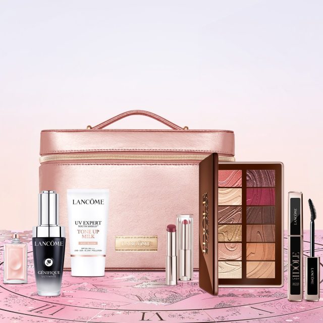 人気のスキンケア&メイクアップアイテムを詰め込んだ豪華なコフレが今年も登場。<βグルカン>を配合し、肌の回復に特化したブースター美容液「ジェニフィック アルティメ セラム」、スキンケア成分を75%配合し、肌の潤いを保ちながらシワの原因となるロングUVAから肌を守る「UV エクスペール トーン アップ ローズ N」、まつげ1本1本をボリュームアップする「ラッシュ イドル ウォータープルーフ 01」、透明感のある鮮やかな発色で唇を彩るロ―ズカラーの「イドル リップバターグロウ 30」は現品でイン。さらに、ローズ×ジャスミンが香る「イドル オードゥ パルファン」のミニサイズと、上品で深みのあるカラー&光を添える質感が揃うパレット「イドル カフェ クラッシュ」をセットに。たっぷり収納できるバニティポーチまでついたかなりお得なチャンスをお見逃しなく!