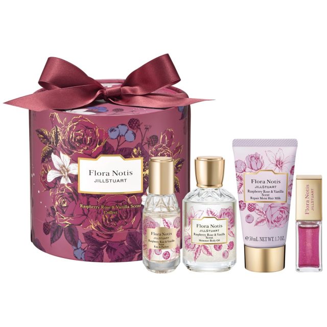 甘酸っぱいベリーやピーチなどのみずみずしさと、ローズやバニラの上品で甘い香りを掛け合わせた可愛らしくもあり大人っぽさもある香り〈ラズベリーローズ&バニラ〉。このホリデーの高揚感を掻き立てる香りの限定アイテムがたっぷり詰まった2025年の限定コフレが登場します。ふんわり香るオードパルファンをはじめ、肌を煌めかせるボディオイル、昼夜問わず使えるヘアミルク、みずみずしく唇を潤すリップエッセンスがセットに。ホールケーキのような可愛らしいボックスに入ってお届けします。