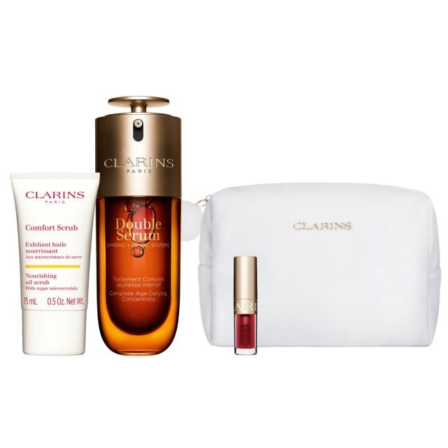 ブランドを代表するエイジングケア美容液をたっぷり体感できるコフレがお目見え。毛穴の目立たない、輝くキメ肌に整える「ダブル セーラム ADC」の現品サイズに、唇の角質ケアにも重宝するオイルスクラブ、潤いとツヤを与えるリップオイルのミニサイズがそろいます。高級感漂うホワイト×ゴールドロゴのポーチにセットされたコフレは、大切な人へのギフトにもぴったり!